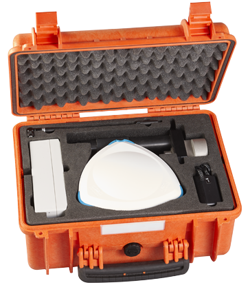 Ecosonda monohaz integrado con antena GNSS, batería y software de visualización en tiempo real.